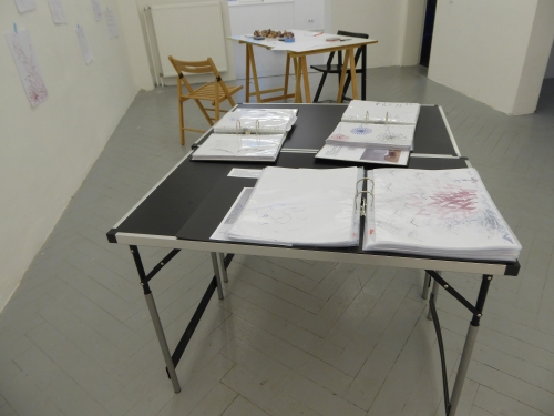 Die Ausstellung zeigt unterschiedliche Positionen im Umgang mit der Linie. Gezeigt werden zeichnerische Abbildungen, objekthafte Linien und prozesshafte Zeichnungen.