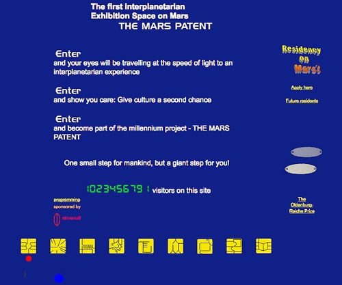 [ zur Projektseite ... ] MARS PATENT The first interplanetarian Exhibition Space on Mars